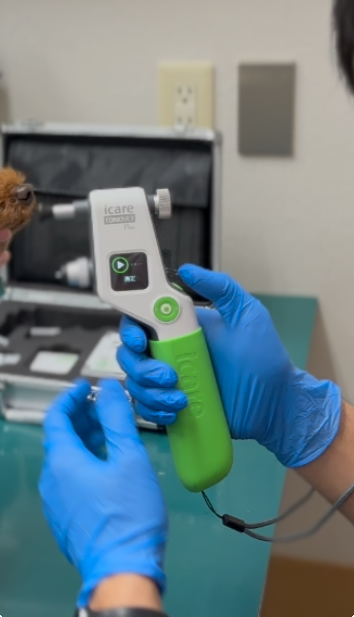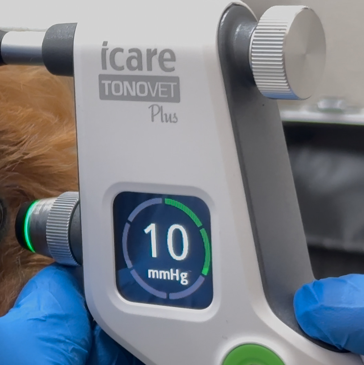 従来ではペンタイプで眼球にタッチするTonopenXLを使用しておりました。TonopenXLもそこまで大きな誤差もなく非常に優秀な装置であったのですが、より動物に負担の少なく検査精度の高いTonoVetPlusを導入致しました。